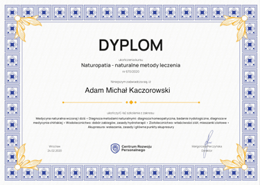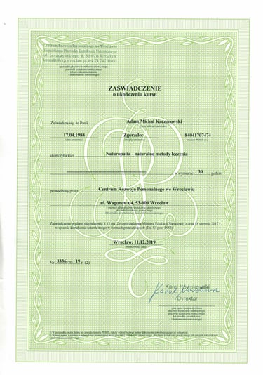 Nazywam się Adam Kaczorowski. Jestem specjalistą medycyny informacyjnej -Biorezonans oraz naturopatą. Od 2000 roku zajmuję się zdrowiem oraz sposobami jego zwiększania w ATN we Wrocławiu. Medycyna holistyczna daje wiele takich możliwości a sam biorezonans doskonale łączy medycynę tradycyjną ze starosłowiańską oraz wschodnią medycyną tradycyjną.